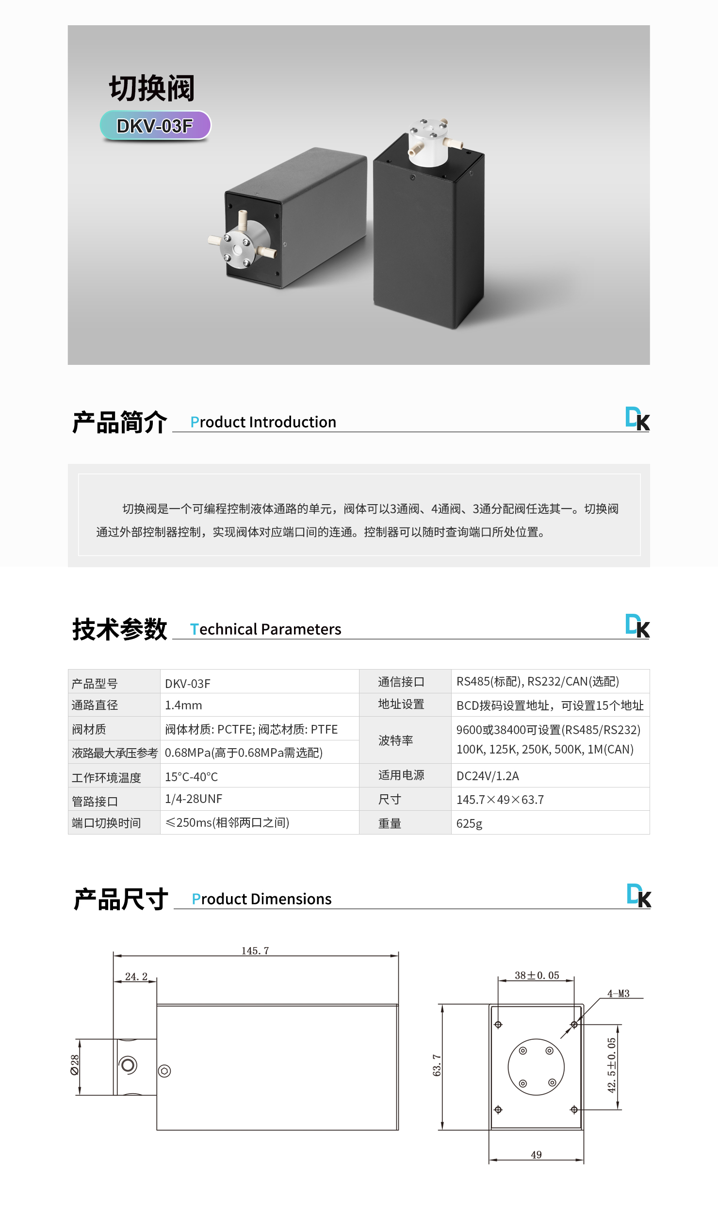 切換閥是一個(gè)可編程控制液體通路的單元,閥體可以3通閥、4通閥、3通分配閥任選其一。切換閥通過外部控制器控制,實(shí)現(xiàn)閥體對應(yīng)端口間的連通??刂破骺梢噪S時(shí)查詢端口所處位置。